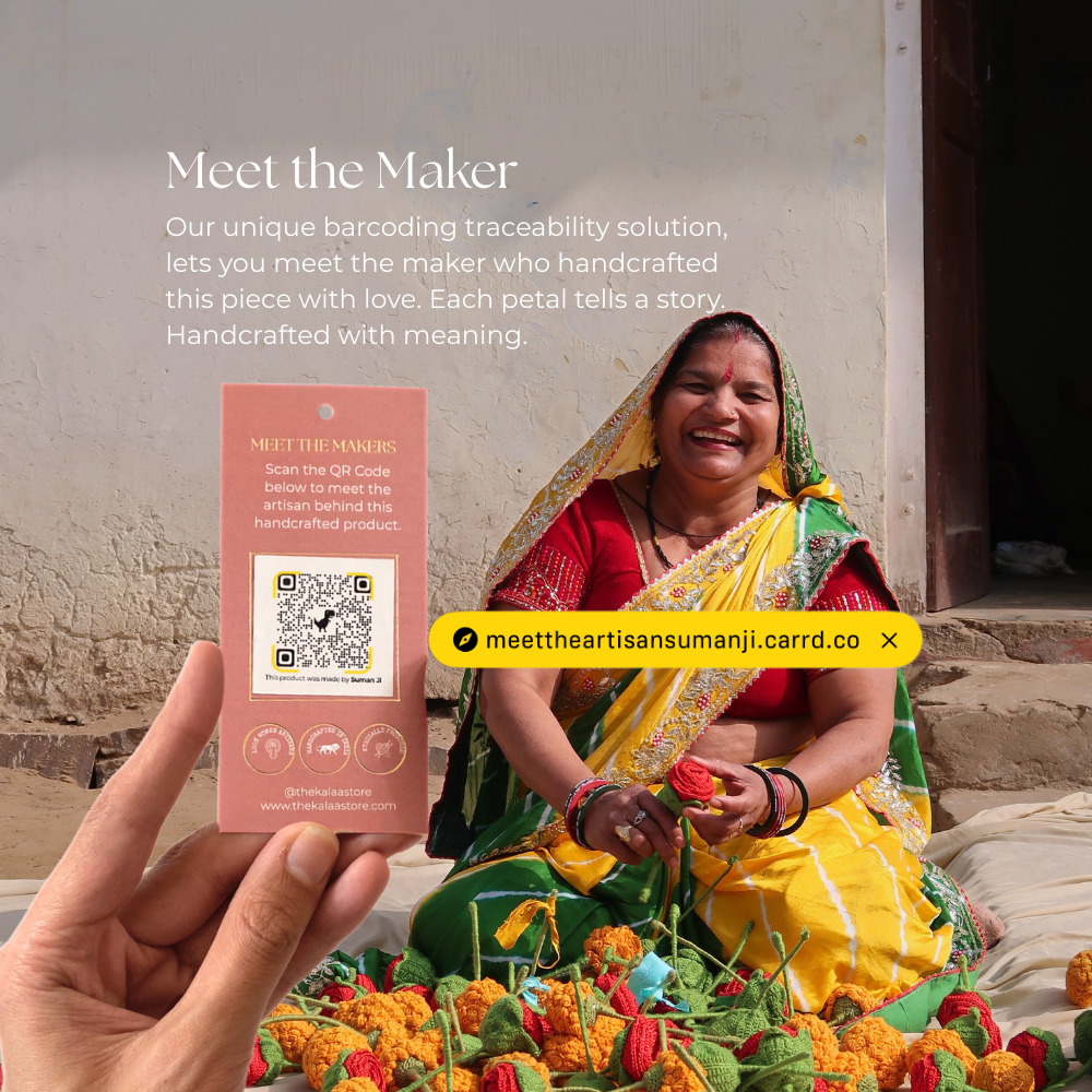 Our crochet flowers are handmade using premium, eco-friendly yarns. Each flower reflects the artistry and care of the women who craft them.